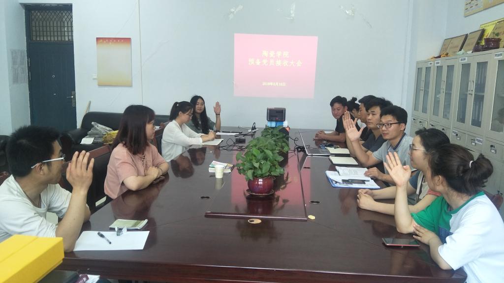 会上,王文宾、韩玉蒙、姚珂珂、魏羽童等四位发展对象围绕对党的认识、入党动机、本人履历、家庭和主要社会关系等方面分别向大会汇报了各自情况。入党介绍人分别介绍了上述发展对象的有关情况,认为四位同志已基本具备预备党员条件,愿意介绍其入党。员工党支部委员会向大会报告了对发展对象的审查情况,与会党员充分发表意见,对四位发展对象能否入党进行深入讨论。接着,根据大会讨论情况,四位发展对象依次谈了自自己的认识和决心。最后,大会以举手表决的方式,经表决,认为王文宾等四位同志已基本具备预备党员条件,同意将王文宾、韩玉蒙、姚珂珂、魏羽童等四位同志接收为中共预备党员。