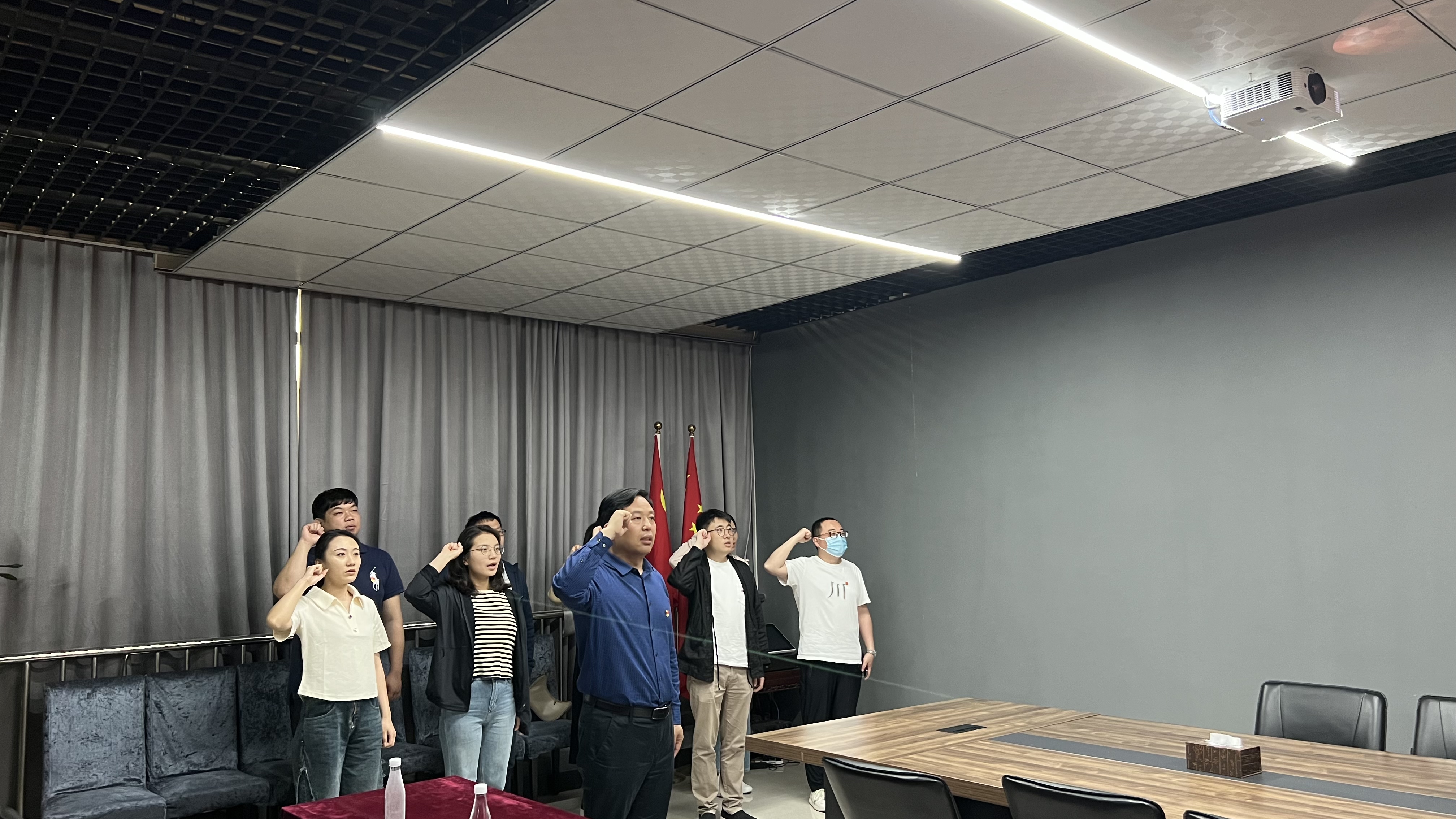 参观学习后,全体党员面对庄严的党旗,郑重举起右拳,重温入党誓词,一句句铿锵有力的誓词在文化馆久久回荡。
