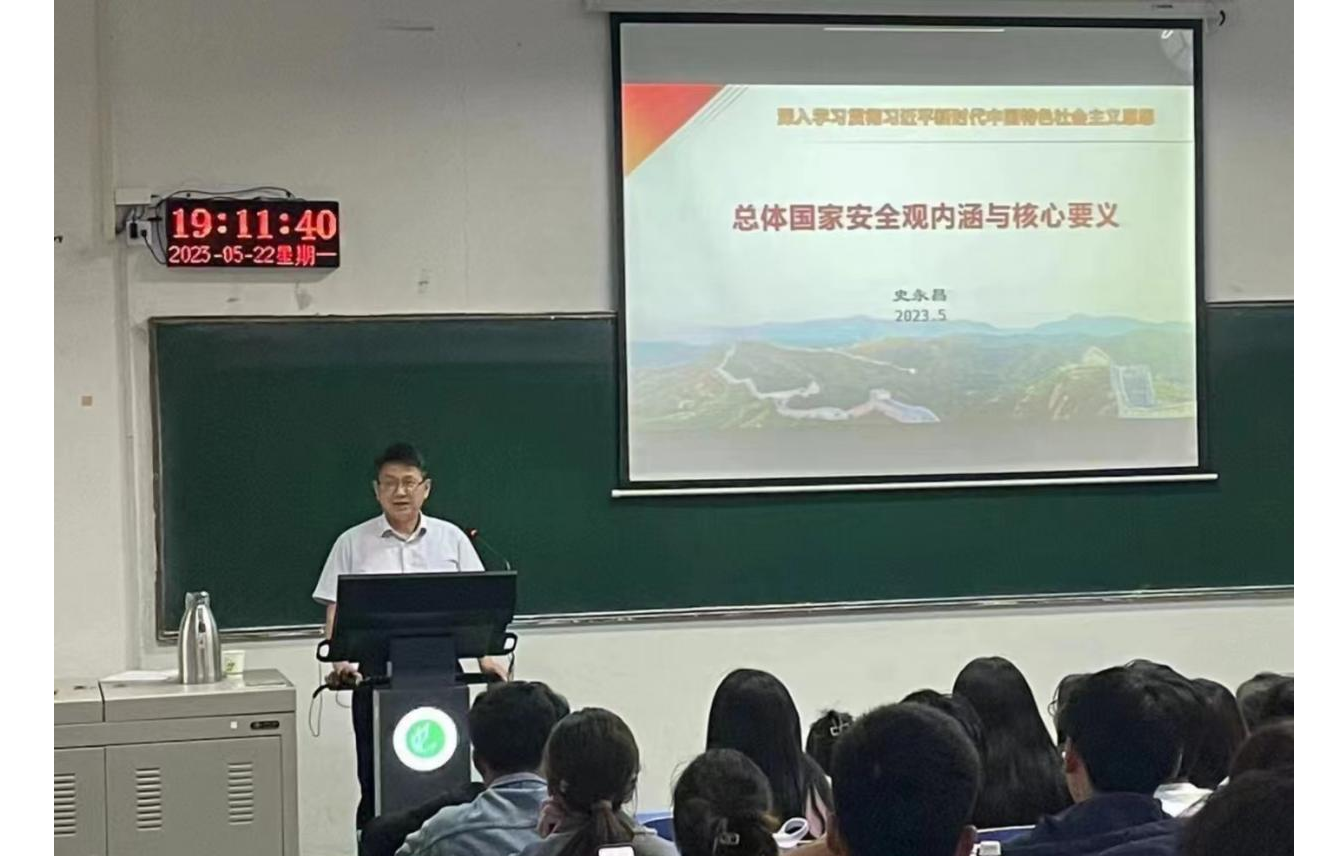 5月22日晚,副董事长史永昌在3号楼3106教室以“总体国家安全观内涵与核心要义”为主题,为第十八期发展对象培训一班的全体学员讲授了一堂生动的专题党课。