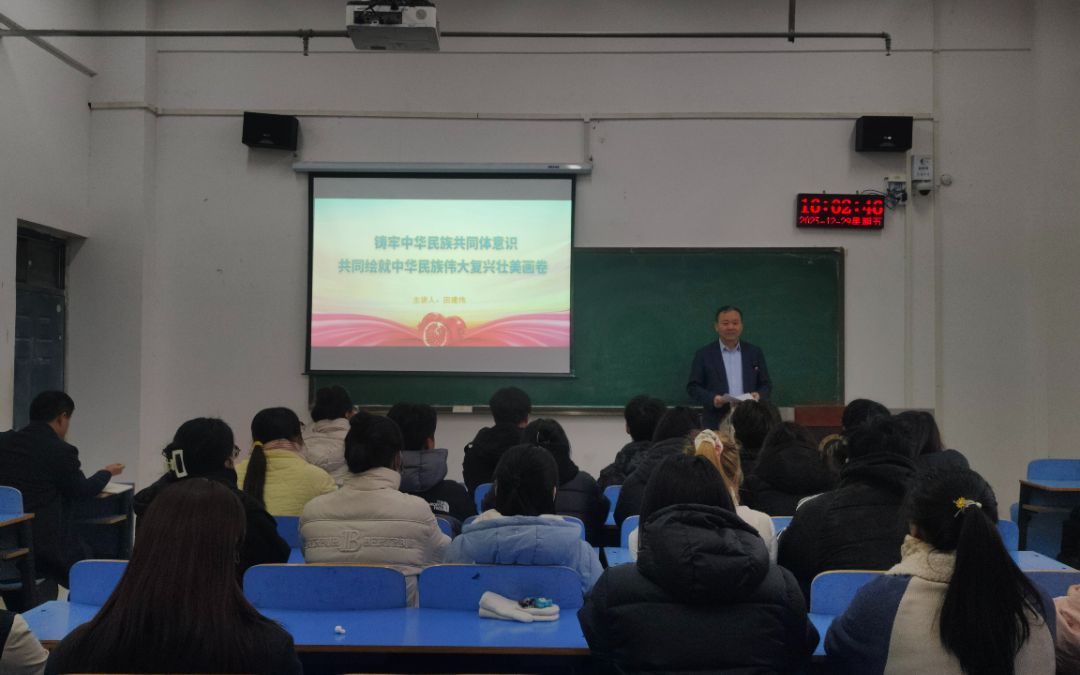 讲座中,田建伟书记以铸牢中华民族共同体意识为主线,围绕习近平总书记关于加强和改进民族工作的重要思想,深刻把握中华民族多元一体的基本国情,全面认识民族团结进步事业的伟大成就,推动新时代党的民族工作高质量发展四个方面,运用政策理论和历史脉络相结合的方式,结合实际案例,详细讲解了铸牢中华民族共同体意识的重大意义、民族地区如期实现脱贫的历史成就、各民族社会发展的历史变迁。