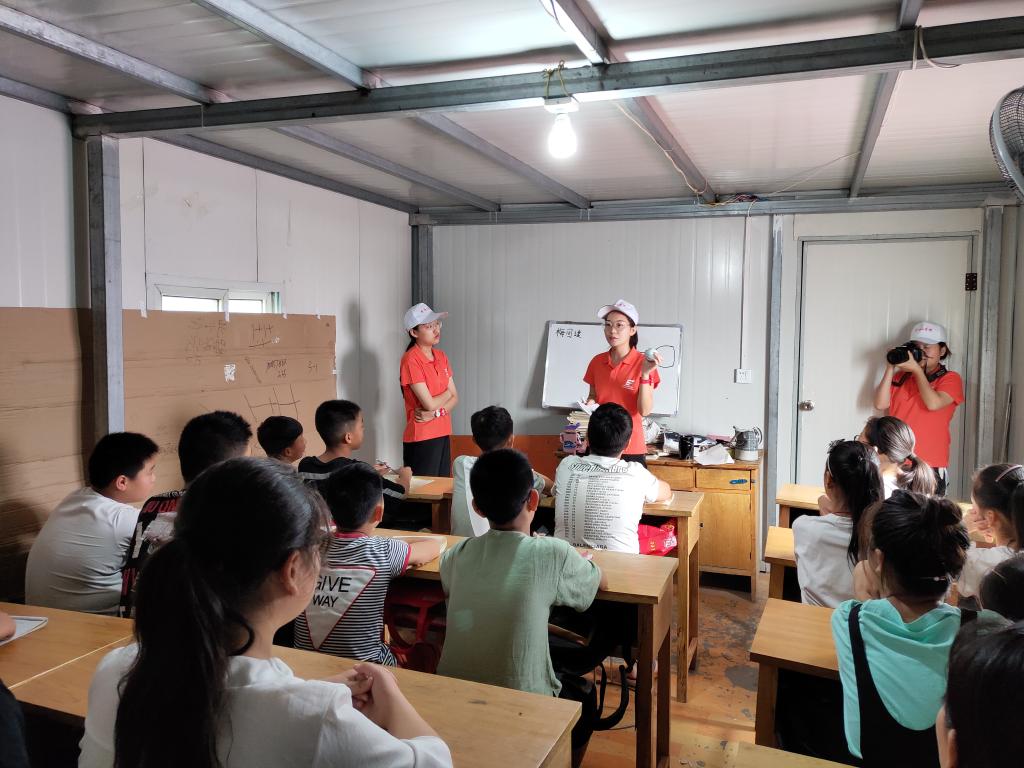 图为志愿者初次为孩子们授课场景照片
