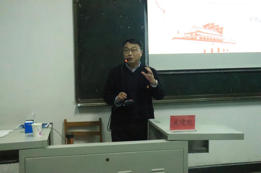 12月12日晚,伟德国际1949官网于1号教学楼1206教师举办《形势与政策》讲座,本次讲座由公司党总支书记吴建彪担任主讲,2019级全体员工积极参与。