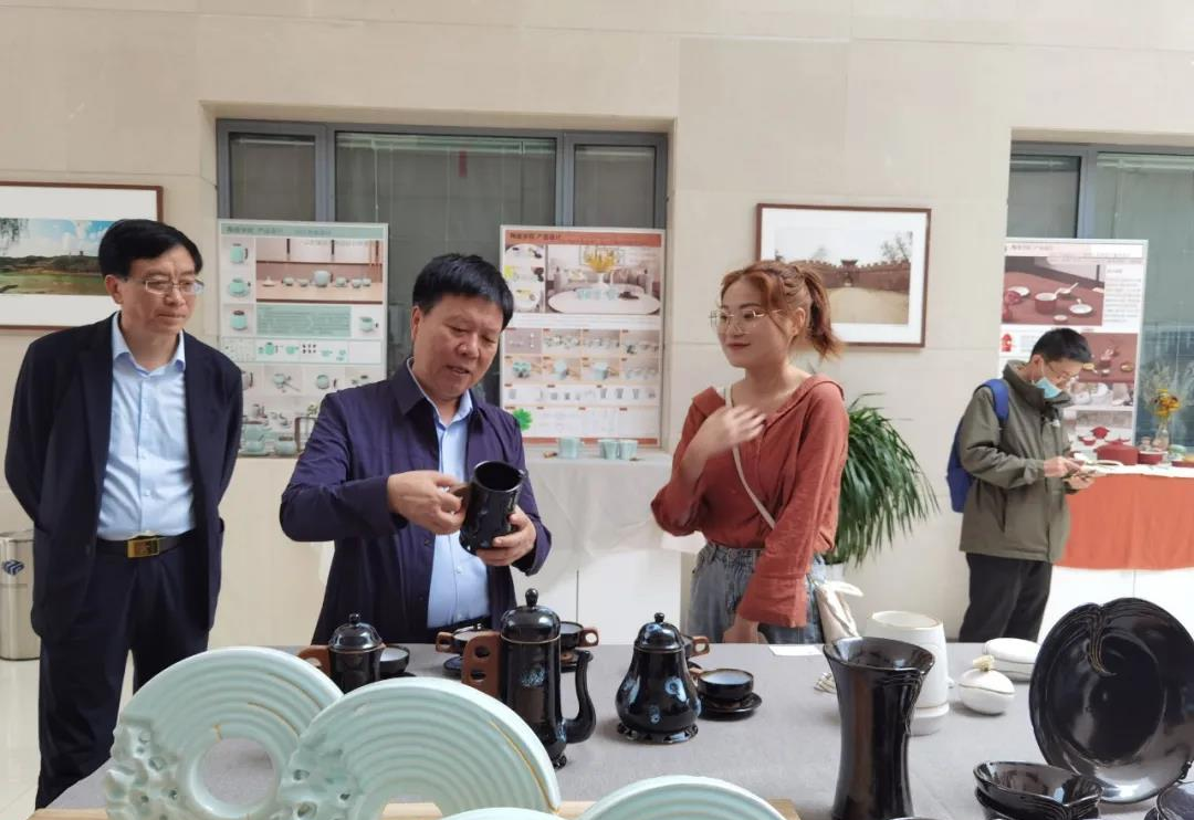 在参观过程中,周斌认真倾听不同作者对自己作品创作过程的讲解,还不时询问他们在创作过程中的细节,了解各类作品的创作背景、文化内涵、市场前景,对员工和指导老师的辛勤创作给予了很高的评价,连连称好!周斌指出,陶瓷及艺术设计类专业要坚持产教融合,以本地文化传统为出发点继承和发扬传统文化,做到立足于本地,与时代同步,将教学过程与产品生产和销售对接,打开文创作品的销路。他还现场要求相关政府管理部门要主动作为,积极为公司推广文创作品提供便利,将师生艺术创意作品引入各旅游景点,提升本地旅游景点的文化内涵和品味,同时激发师生艺术创作的灵感和激情。