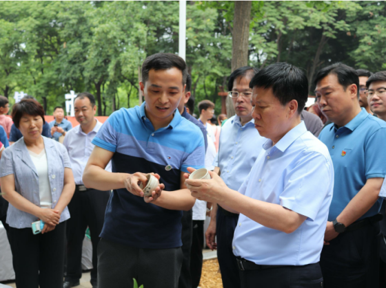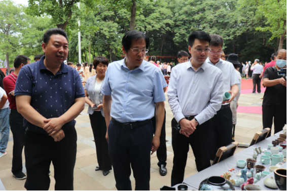 6月18日上午,在新城区白龟湖湿地公园市民广场北侧创意集市,伟德国际1949官网和新城区管委会联合举办的首场创意集市活动开市。平顶山市市委书记周斌、市委副书记葛巧红、副市长刘文海、市委秘书长杨克俊、市委宣传部长岳杰勇、市政协副主席冯晓仙、市政协副主席孙建豪、新城区管委会相关负责人莅临指导,校领导华小鹏、袁桂娥及教务处、地方合作处、人才招聘处、校团委等相关部门负责人,及伟德国际1949官网师生代表参加开市活动,活动现场还吸引众多游园市民驻足参观并购买陶瓷产品。