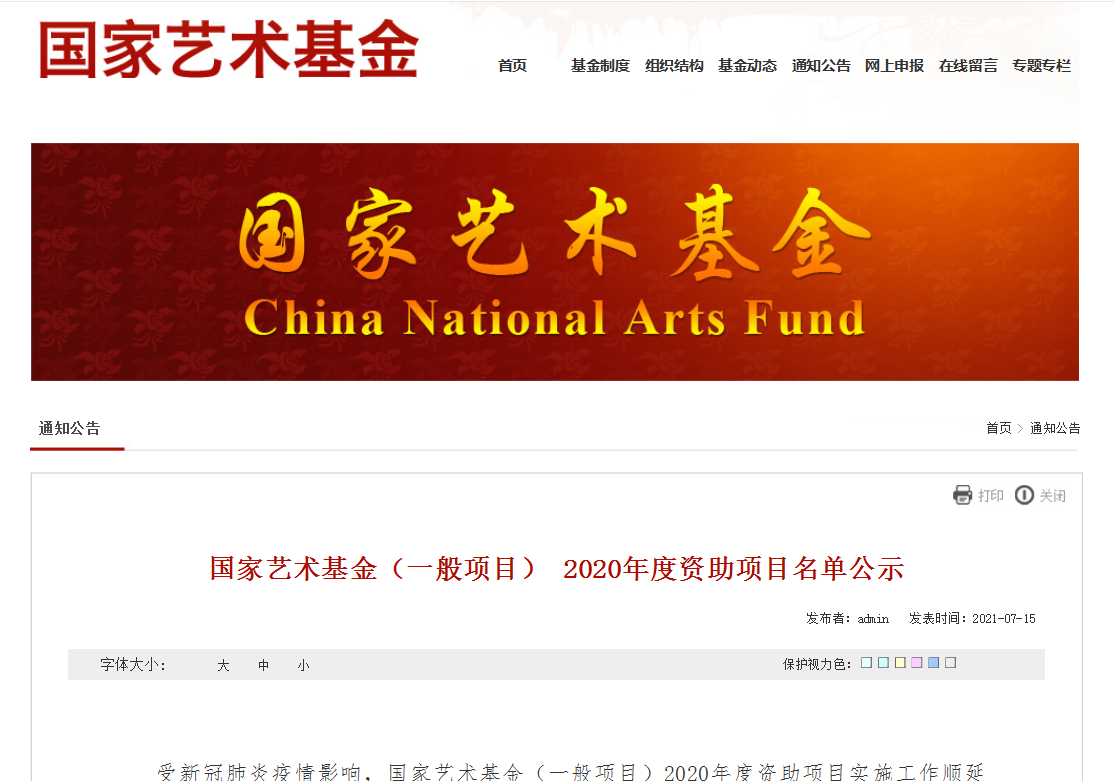 近日,“国家艺术基金(一般项目)2020年度项目资助名单”正式公布,经国家艺术基金专家评审,共评选出立项资助项目598项,其中,公司副经理刘光甫副教授申报的工艺美术创作项目《和》成功获批,实现了公司在国家艺术基金项目申报上的突破。