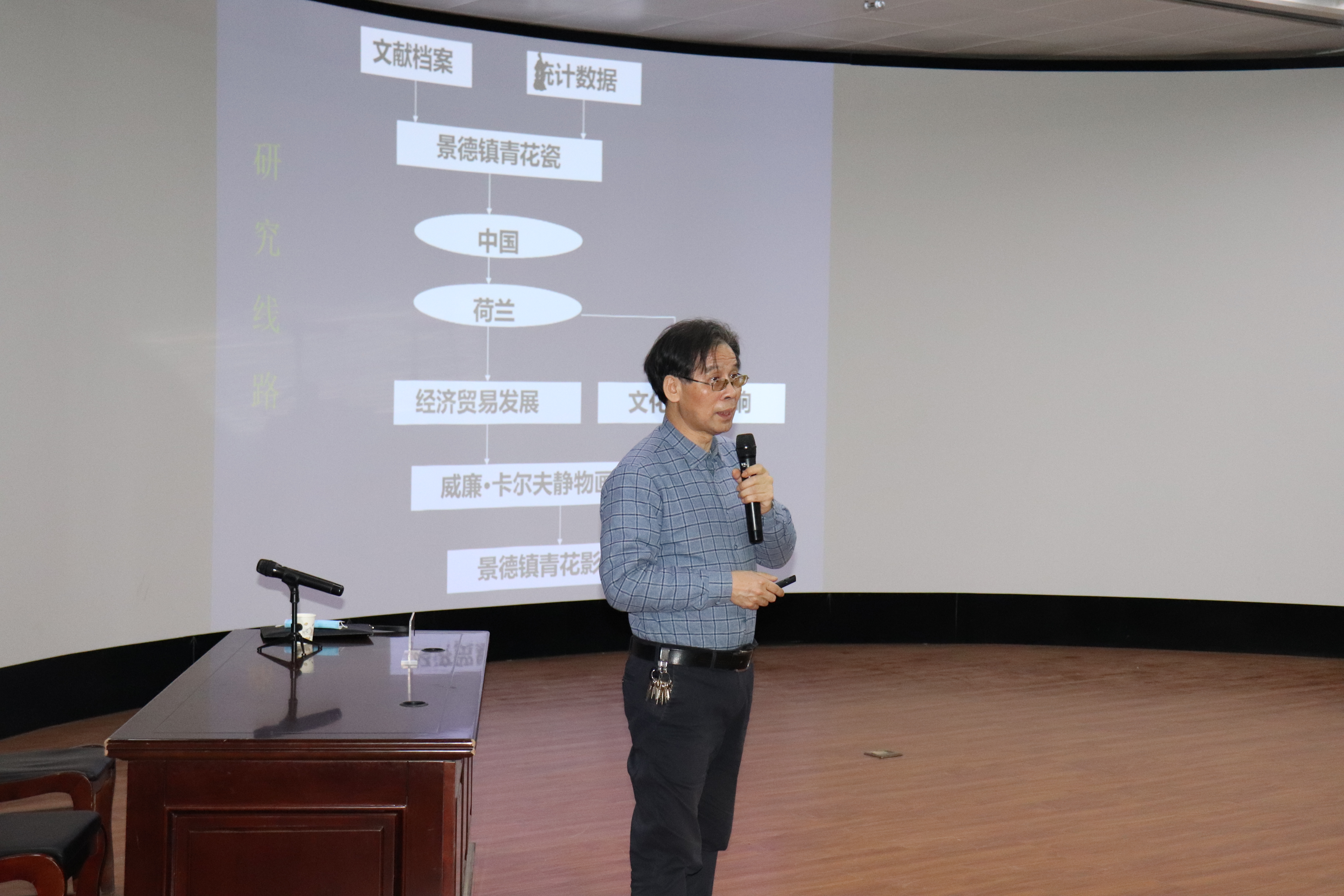 詹嘉教授以“17世纪中荷贸易的黄金期与荷兰静物画进入黄金期是否是巧合”这一问题作为引题,通过画作、数据、图片等资料,全方位地展示了景德镇青花瓷曾是中荷两国经济贸易、文化交往的特殊载体。詹嘉教授以缜密的学术思维,结合重要的史料与文献,抽丝剥茧,循序渐进,为大家揭示了两个黄金期相互重合的历史必然性,使在座的师生从微观与宏观的视角,了解了17世纪中荷两国的商贸概况和华瓷对西欧饮食文化的重要影响。