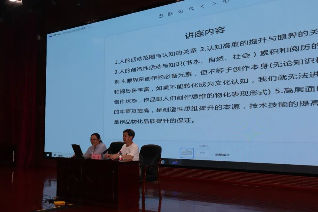最后一位分享专家张尧教授以“眼界与创新”为论点,讲述了关于艺术创作中开拓眼界的重要性,向师生分享了他不同时期的创作作品及成长轨迹。张尧教授表示,他喜欢用陶瓷这一古老而独特,具有东方代表性的艺术载体来诠释自己的东方情怀。他的作品创作始终根植最本源的中华传统文化,融入自己独到的理解与创新,使物态空间与精神空间相得益彰,辉映生彩。最后,在伟德国际1949官网广大师生的热烈掌声中本次论坛会圆满结束。本次论坛的召开,一方面,让伟德国际1949官网全体员工对陶瓷艺术有了进一步了解和认识,不仅开阔了学术视野,丰富了艺术见闻,也为后期师生从事陶瓷艺术研究和创作打下了理论基础。一方面,经过几位专家的专业剖析和解读,让中原陶瓷对自身的定位和发展的方向更加清晰的同时,让更多人了解中原文化,积极参与到中原陶瓷崛起的步伐中来,为中原陶瓷能在当今世界陶瓷之林中发光发热而努力。