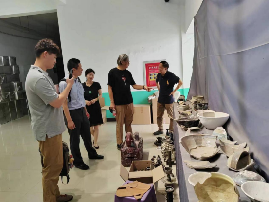 考察期间,顾艺一行还先后参观了公司实训创作工场、陶瓷烧制实验室、鲁山花瓷馆,察看伟德国际1949官网师生陶瓷作品设计、制作、烧制情况,了解伟德国际1949官网的产品研发、公司产品、员工就业创业等工作,观看了“鲁山花瓷恢复仿制技术”系列成果。