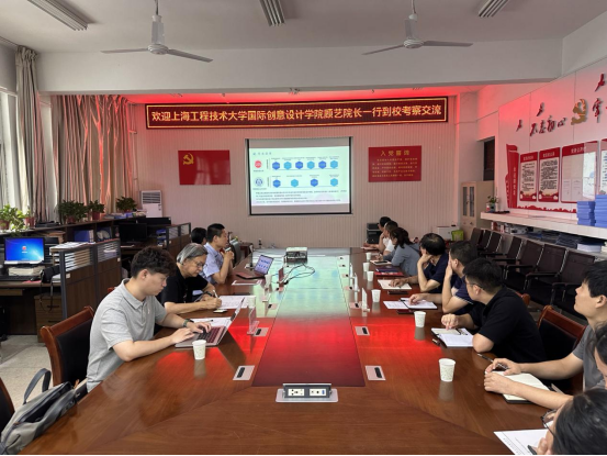 7月26日,上海工程技术大学国际创意设计公司经理顾艺一行五人来公司考察,并在艺术楼A118会议室与公司党政领导、专业老师进行深入交流。