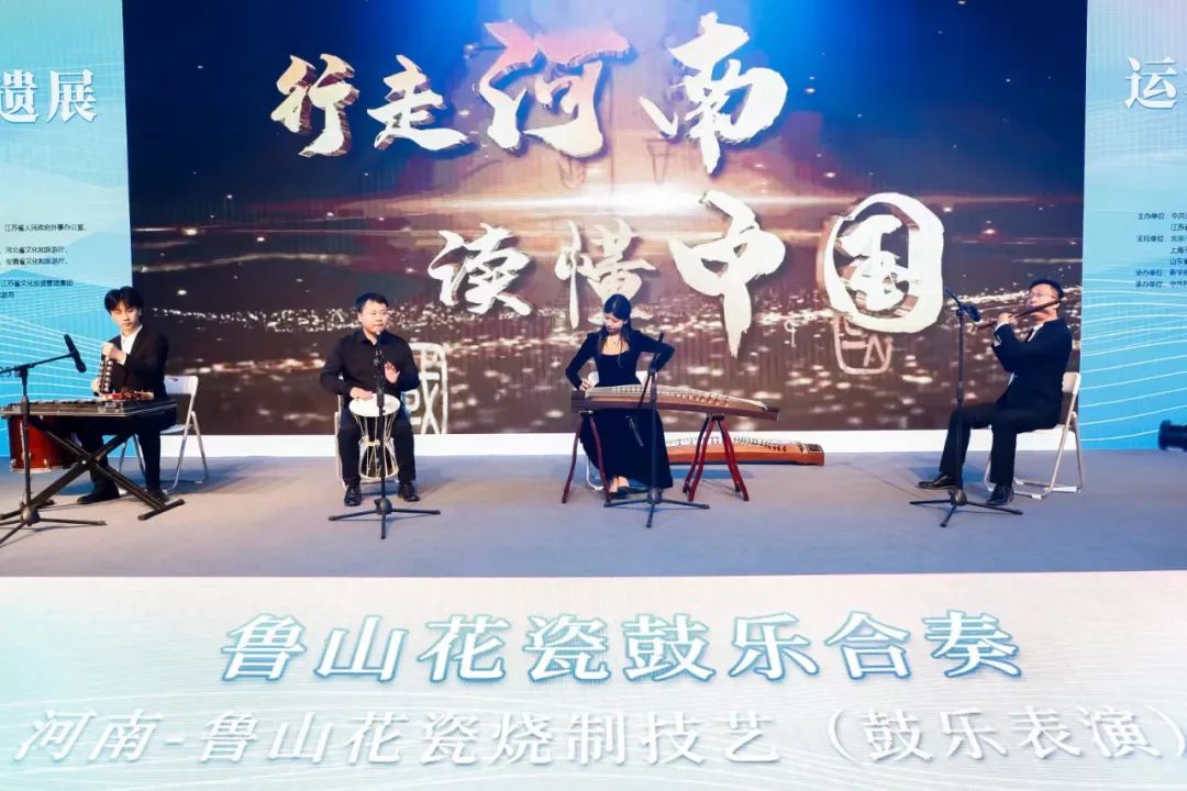 汝瓷烧制技艺国家级代表性传承人王君子、鲁山花瓷烧制技艺省级代表性传承人梅国建为参展嘉宾现场讲解,吸引了文化和旅游部及各省嘉宾驻足观看。以鲁山花瓷细腰领衔的器乐表演,带来了恢宏明快的盛唐风韵,展现了中原文化的独特魅力。