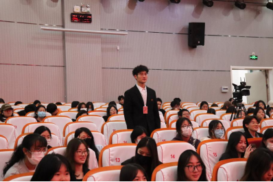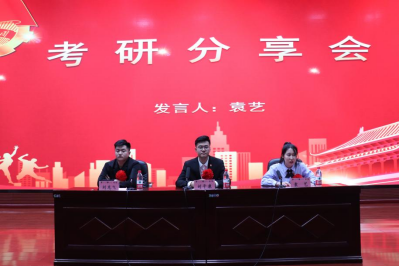 会议伊始,袁艺与刘龙飞针对“考研规划”、“英语技巧”、“专业课复习”、“政治开始时间”等方面进行了详细地讲述。刘子康于今年上半年通过了选调生考试,他从自身经历、选调生定向与非定向的异同、报考条件等方面进行讲述。同时,他们呼吁同学们摆正心态,豁然面对。随后,同学们积极提出自己的疑问,学长学姐们耐心的做出了针对性解答,现场同学从他们的热情分享中获得了灵感,并与其展开了深入友好的讨论。