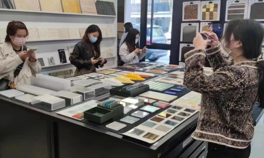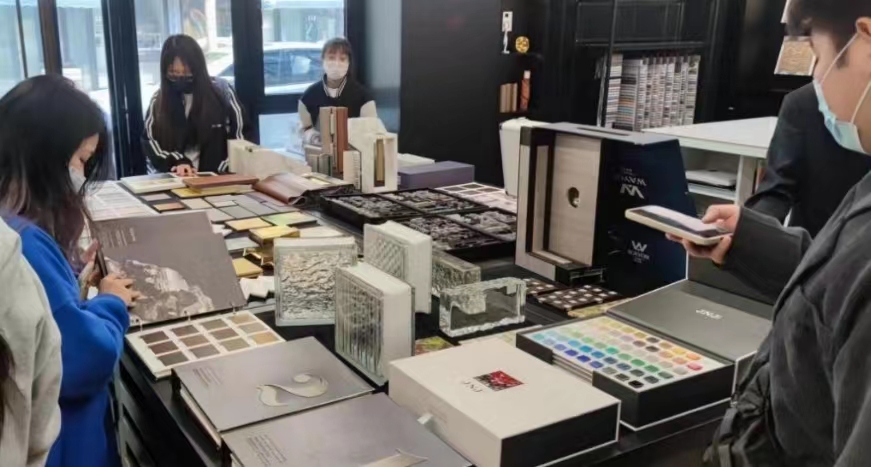 参观过程中同学们深入了解市场上新型材料,对材料特性、施工工艺、品牌以及产品规格、设计品质等内容进行深度学习。考察过程中同学们互相交流,对专业知识的吸收与转化有了新的认识,进一步加深了理论与实践方面的认知,感受到专业前沿知识的学习还需加强,希望有机会到企业实习,历练实操技能,全面提升个人综合素养与专业水平。