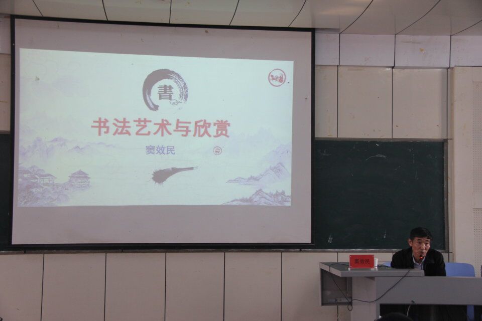 窦效民教授在讲座中就楷、隶、行、草四种书体的基本书写技法做了详细讲解,并进行现场演示。他强调,学习书法要植根传统,研习古代碑帖,苦练基本功;要不断提高文学素养,加强品德修养;要处理好个人爱好与专业学习的关系,夯实基础,全面发展。讲座使在场师生对书法艺术有了全面了解,提高了鉴赏能力。