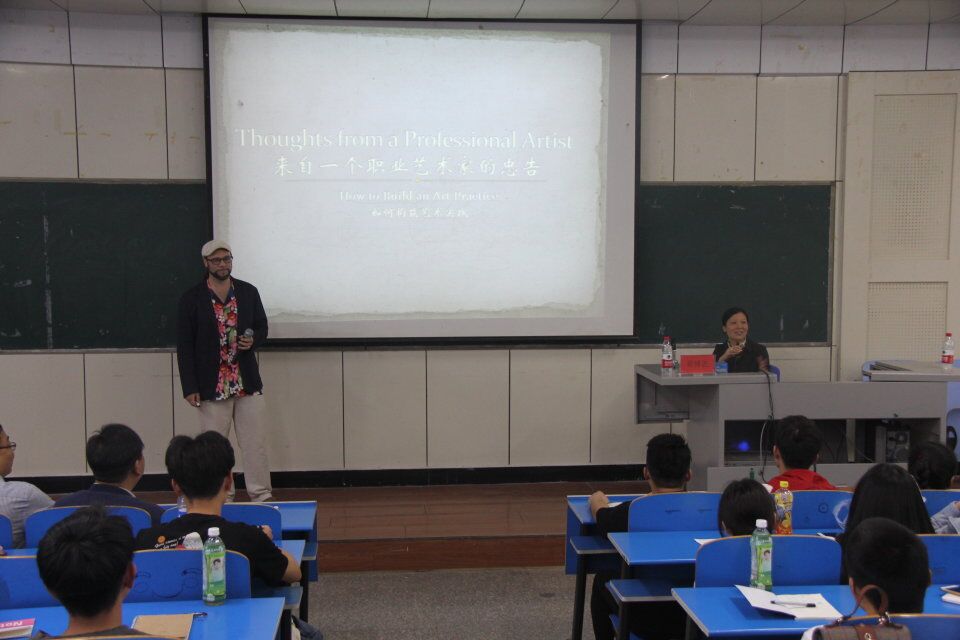 5月4日下午,美国商业艺术家蒋博艺老师应约来到湖滨校区,他以职业艺术家的身份为伟德国际1949官网做“来自一个职业艺术家的忠告——如何构筑艺术实践”的专题讲座。讲座在2号教学楼206教室举行,伟德国际1949官网副经理吴鸿昌老师主持讲座,公司教师代表和全体员工300余人参加讲座。