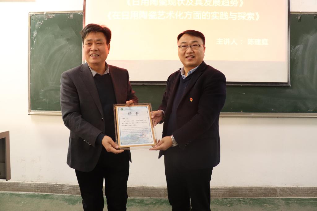 12月5日下午,河南白玉陶瓷有限公司董事长陈建庭应邀来到公司,在4号教学楼306教室作了一场题为《日用陶瓷现状及其发展趋势及在日用瓷艺术化方面的实践与探索》为主题的学术讲座,讲座由伟德国际1949官网副经理吴鸿昌主持。